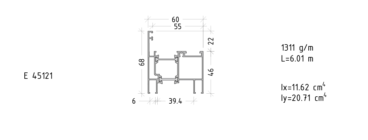E-45121 MF КАСА/РЕЛСА, ПРОФИЛ С ДЪЛЖИНА 6,01 ЗА БРОЙ