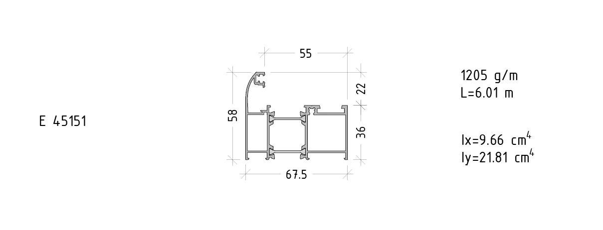 E-45152 INV8014G КАСА/РЕЛСА, ПРОФИЛ С ДЪЛЖИНА 6,01 ЗА БРОЙ
